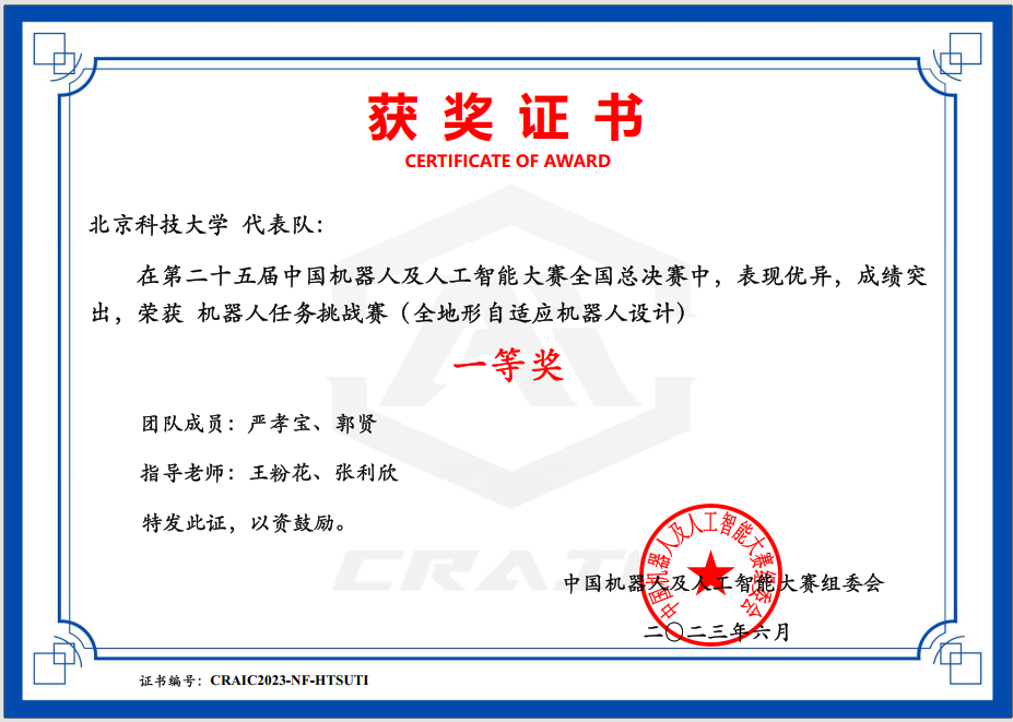 随着2023年第25届中国机器人及人工智能大赛顺利结束,禁漫天堂 学子共斩获12项全国和北京市奖项,其中全国一等奖2项,全国二等奖3项,全国三等奖4项,北京市二等奖2项,北京市三等奖2项。