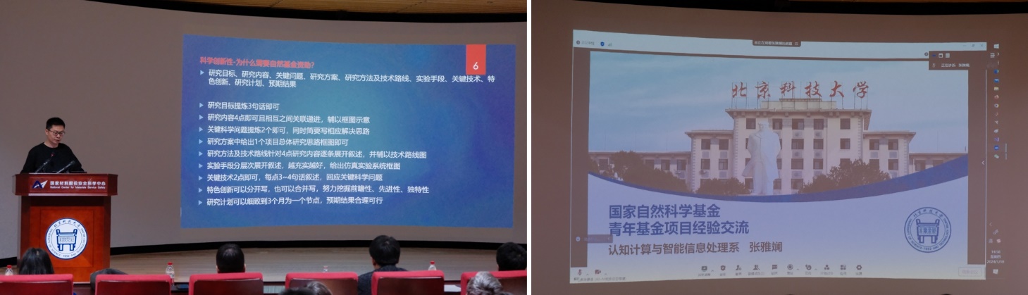 会上,孙亮和张雅斓两位教师从各自申请自然科学基金的经历出发,分别作了自然科学基金面上项目和青年项目的申报经验分享报告,报告结合申报经历以科学性和创新性为核心,总结立项经验、形成心得,助力学院基金申请工作。