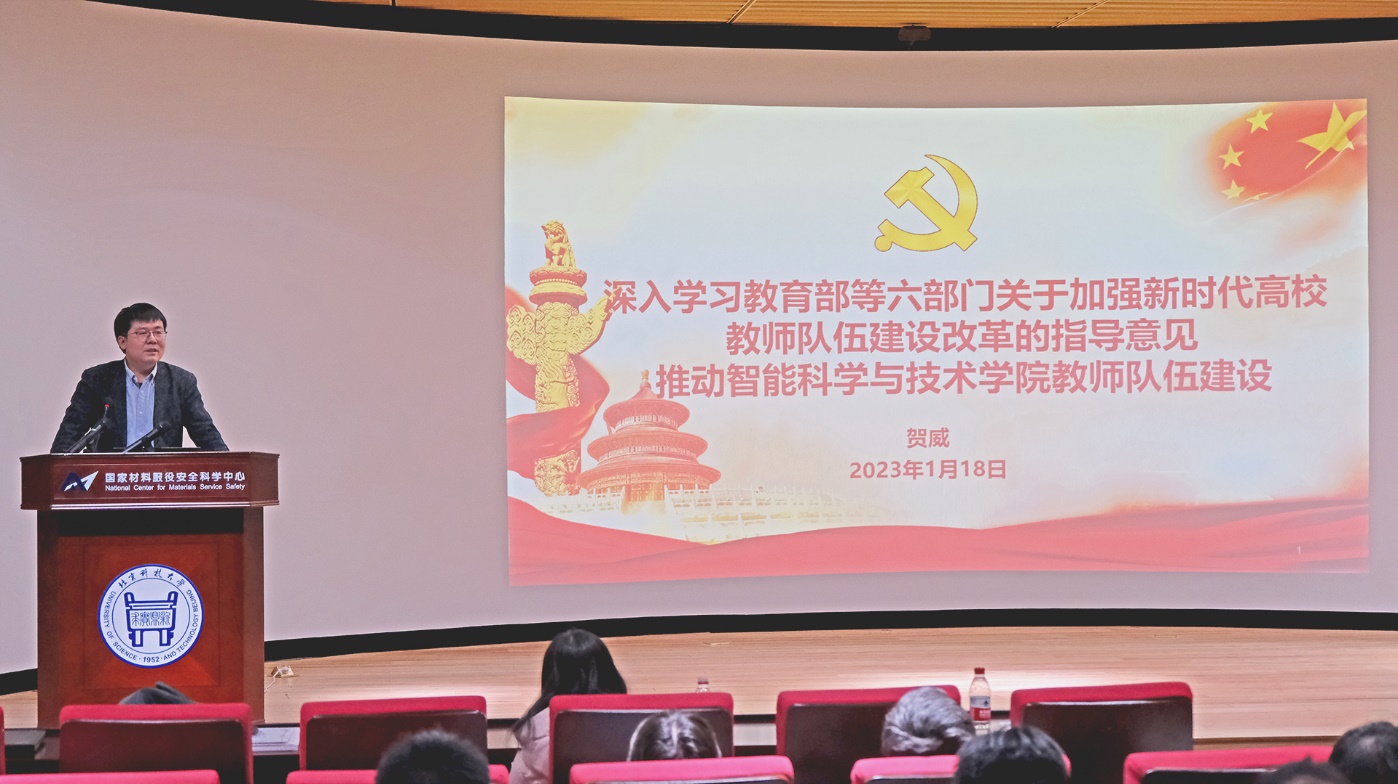 贺威院长在会上介绍了《关于加强新时代高校教师队伍建设改革的指导意见》,强调青年教师要提高站位,注重师德培养,以饱满的热情投身科学研究,以昂扬的姿态推动学院建设,拼搏进取,勇于创新,共同推进学院高质量发展。