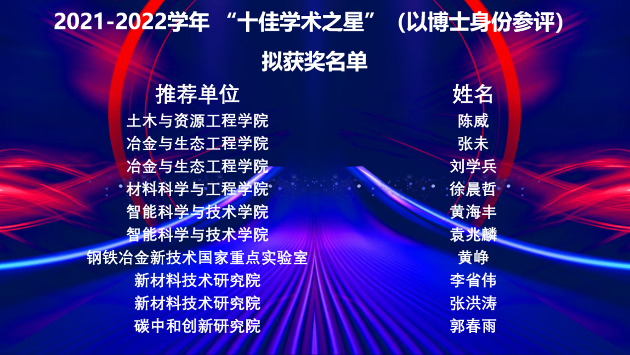 研究生十佳学术之星是学校设立的研究生最高学术荣誉,奖励在学术科研上有突出表现的在读研究生,自2005年起每年评选一次,至今已连续举办十八届。作为彰显研究生学术水平和科研能力的重要平台,十佳学术之星评选在研究生中具有极强的影响力和示范作用,受到了广大研究生以及导师们的高度认可。