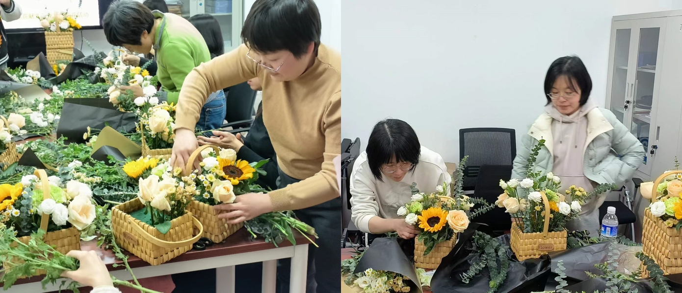 插花活动是一种通过将不同花材、色彩和形态进行巧妙组合,创作出美丽花束或花艺作品的艺术活动。每一朵花都代表着独特的个体,而将它们巧妙地组合在一起,则象征着团结、美好与希望。参与活动的女教工们将在这个特别的日子里释放自己的想象力,创作出属于自己的艺术作品。